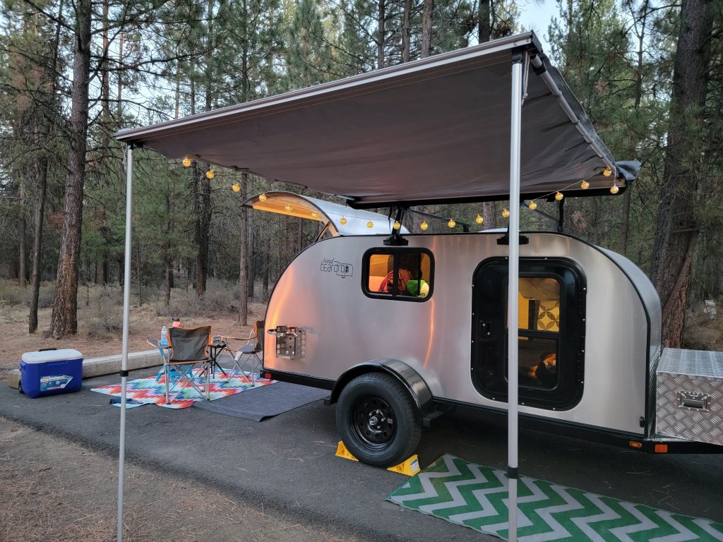 The 5×10 teardrop we purchased was affordable compared to other RVs, trailers, and even other teardrop campers. We added numerous options to our build, such as an extra battery, solar panels, a roof rack, an awning, a side mounted air conditioner, brakes, and more. We ended up paying in the $13,000 range. You could get these trailers for less than that. Our trailer is new, so we will see how it holds up, given the affordable price tag. So far, so good. Luckily, the builder is close to where we live and we can easily have repairs done, if needed.